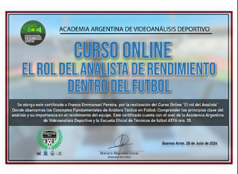 Academia Argentina De Videoanálisis Deportivo Y Escuela De Técnicos De Fútbol AFTA N°35